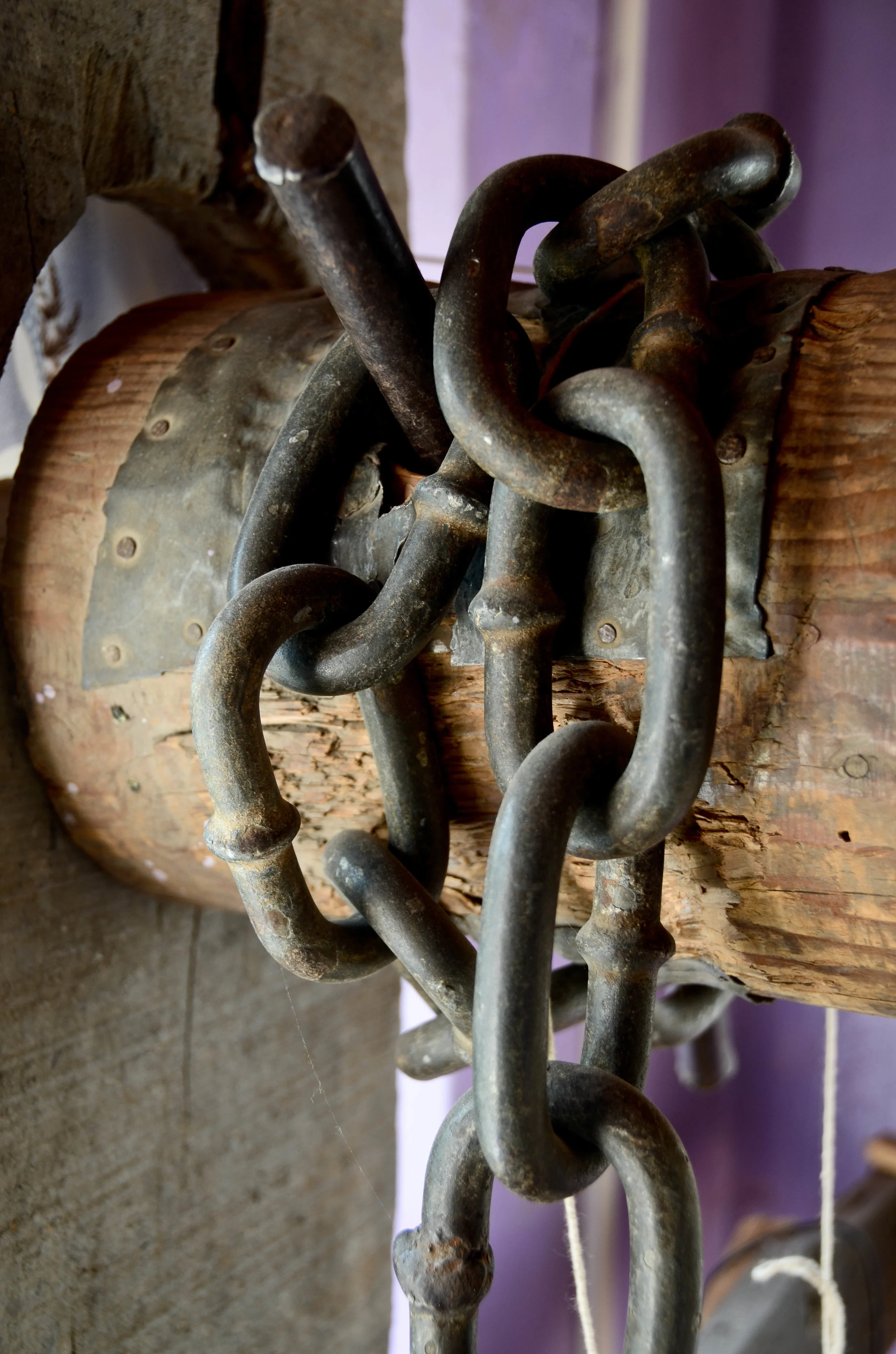 Chains are used to ensure even tension on the warp over the years as the carpet grows.
