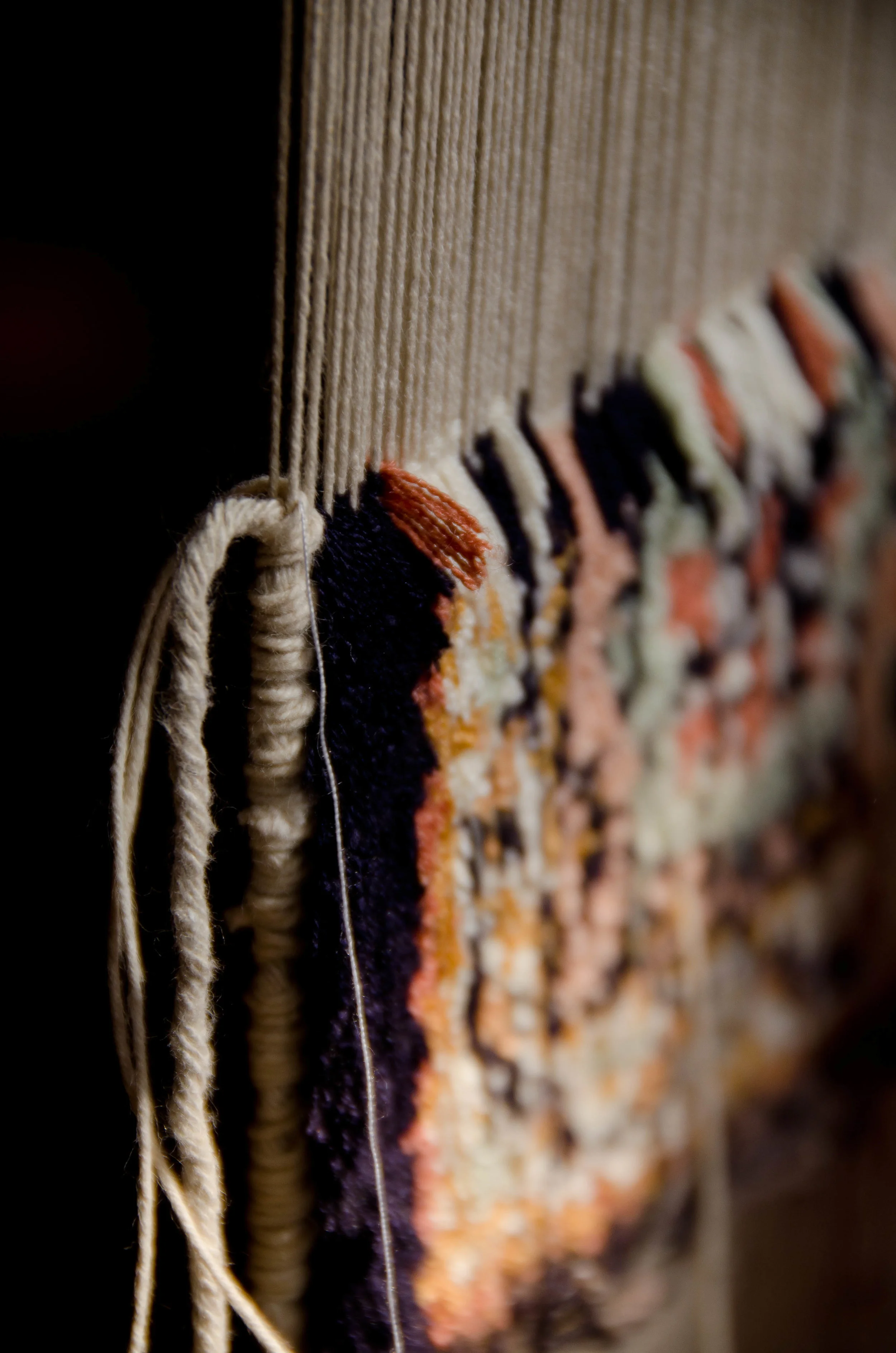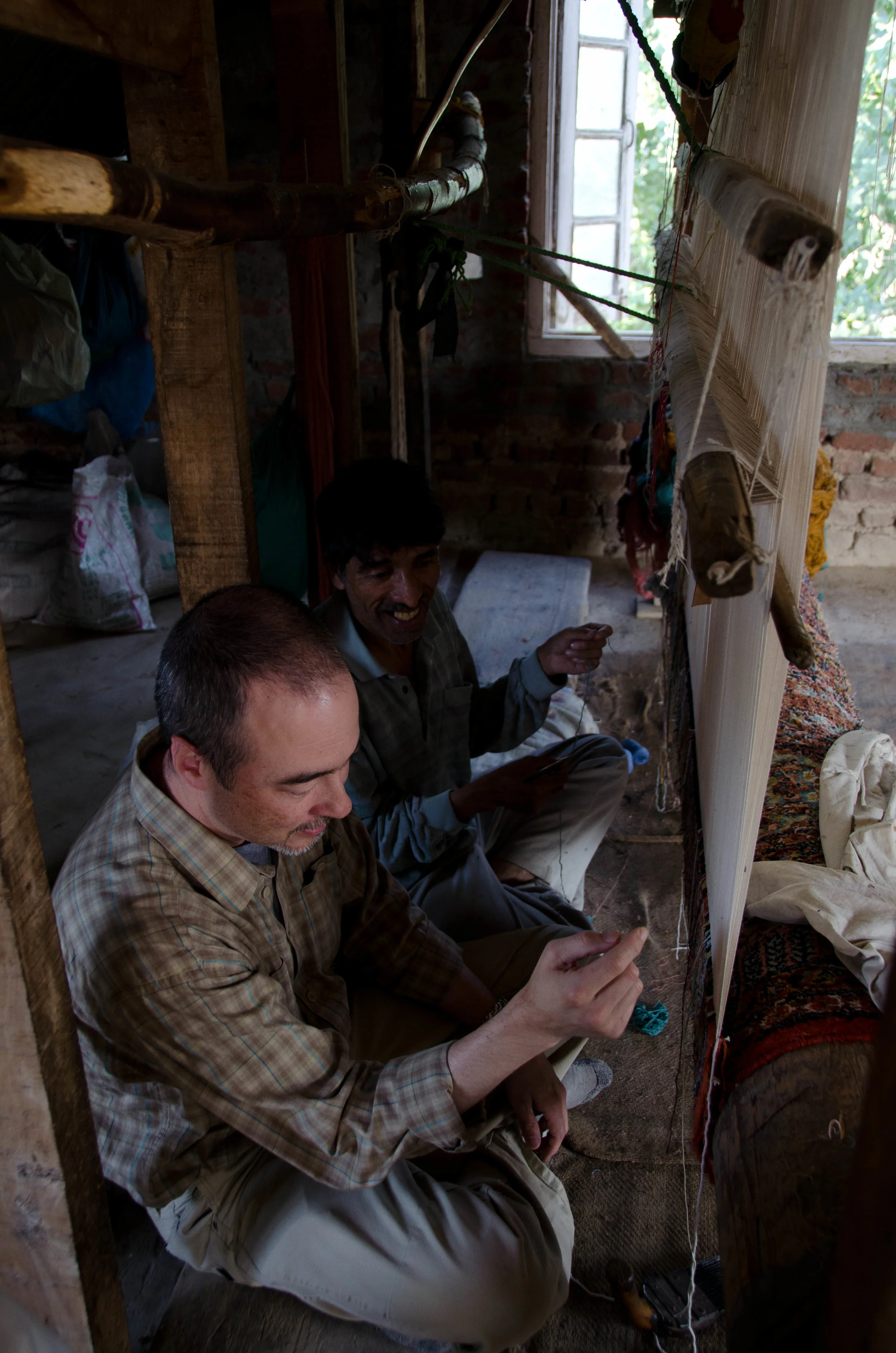 Peter tries his hand at tying carpet knots. It took him a full minute to tie one knot. At that rate, one of his kids would probably have to finish this carpet after he died.